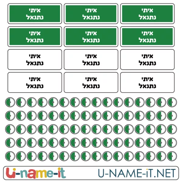 אז מה מקבלים: 75 מדבקות עגולות לסימון החיצים וגם 12 מדבקות שם לסימון המחסניות והנשקים.