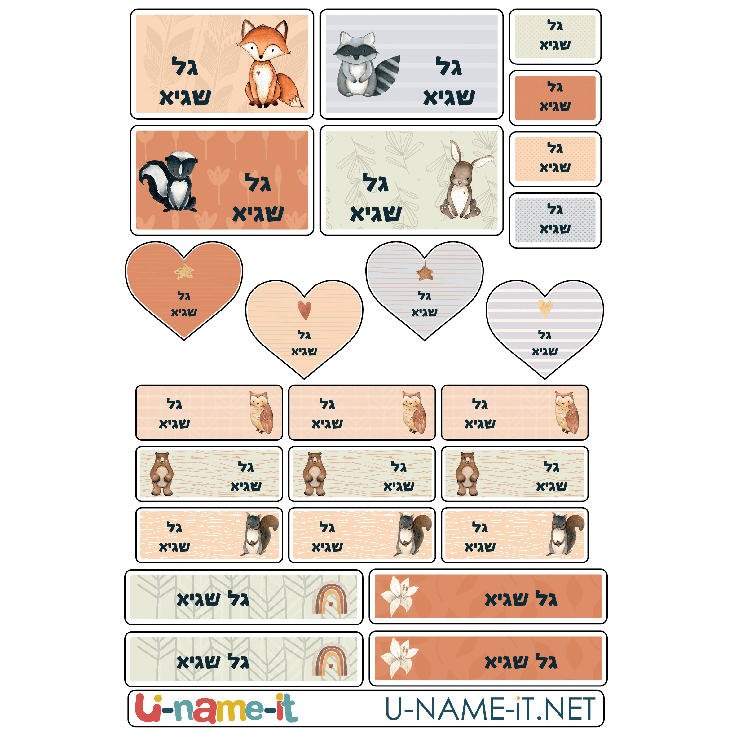 מדבקות שם מעוצבות בהתאמה אישית,למינציה- עמידות גבוהה במיקרו ומדיח – חיות יער
