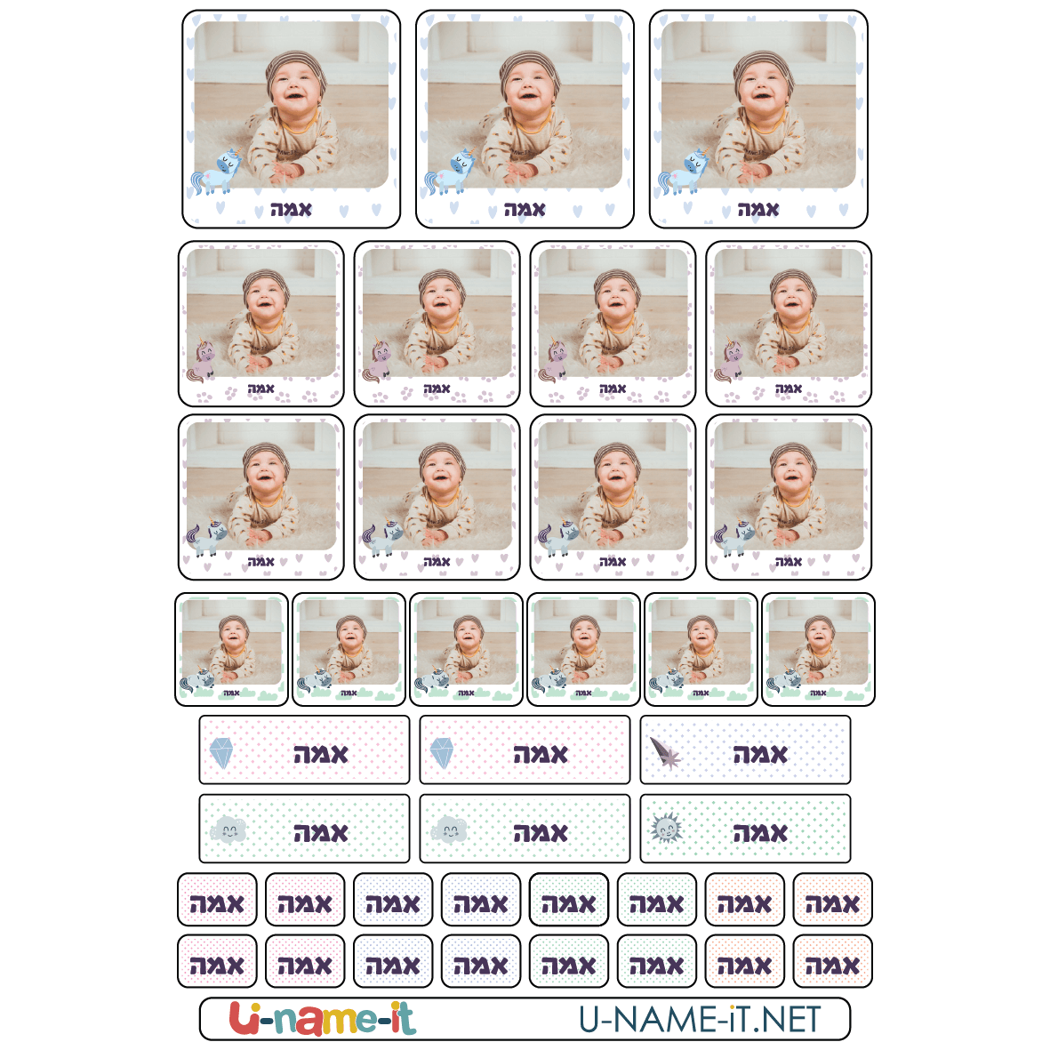 מדבקות סימון מעוצבות עם תמונה ושם לבחירתכם.